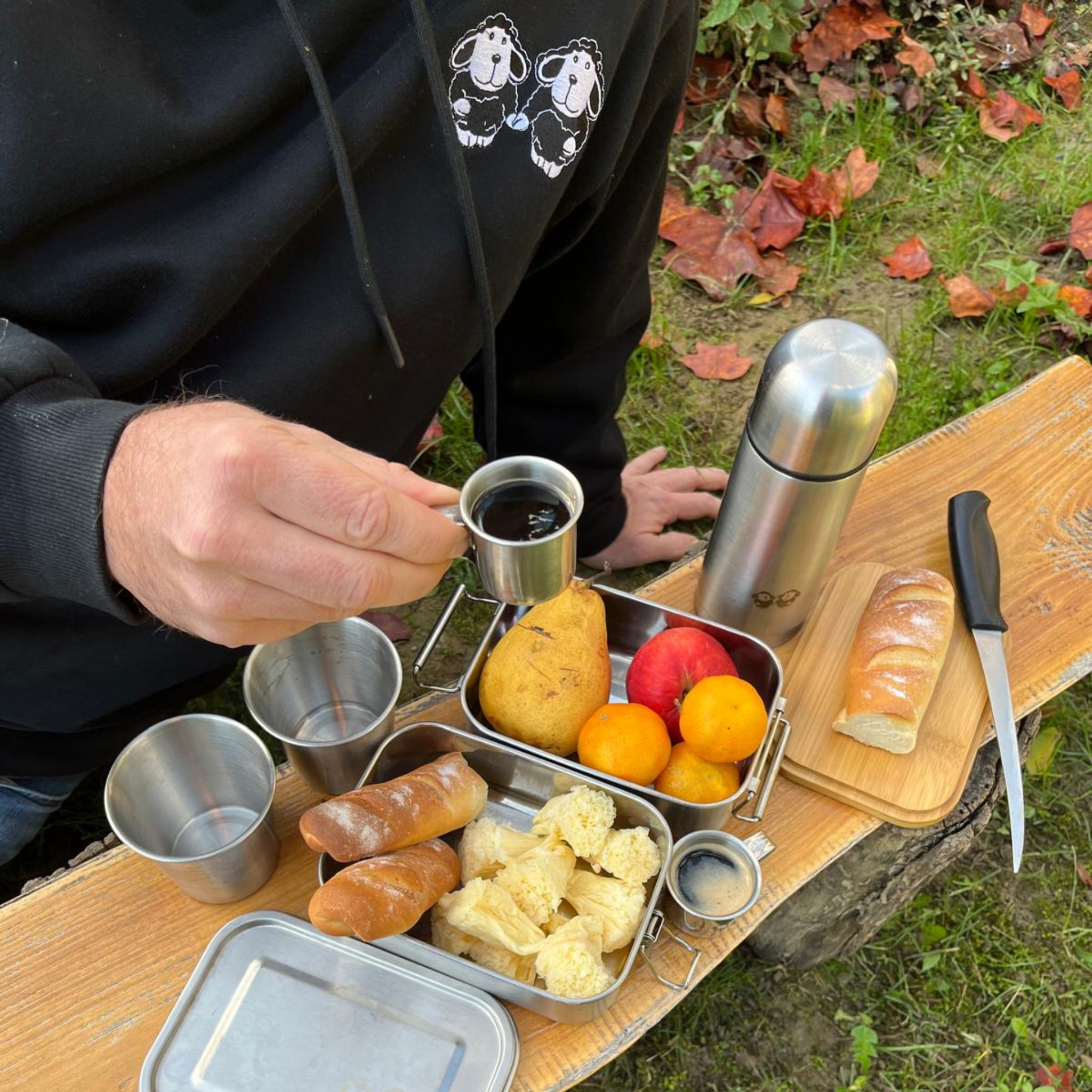 Ajándékötlet | Kültéri nyugalom szett rozsdamentes acél étkészlettel és kapucnis pulóverrel